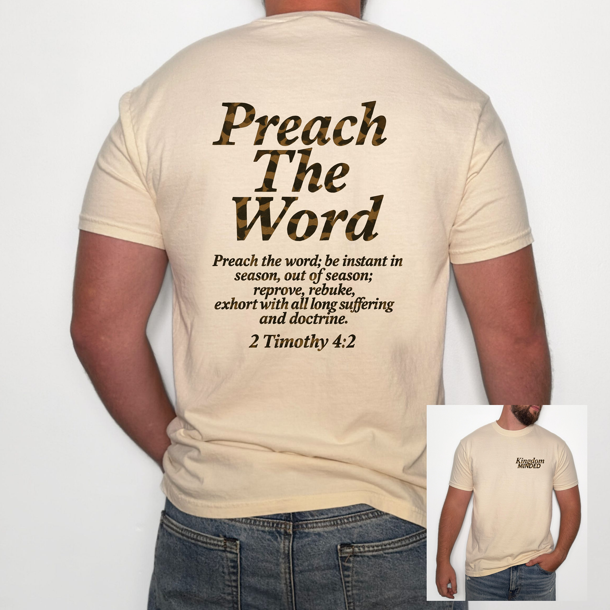 This Preach The Word / Kingdom Minded tee is for believers who live on assignment. The front declares your identity. The back carries the charge.